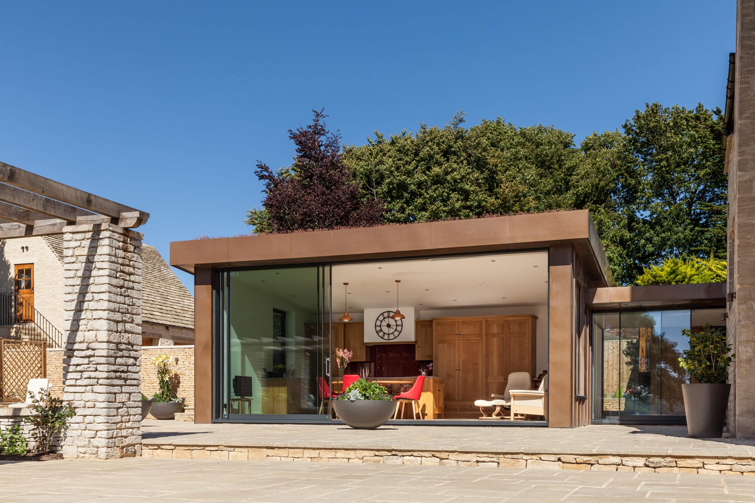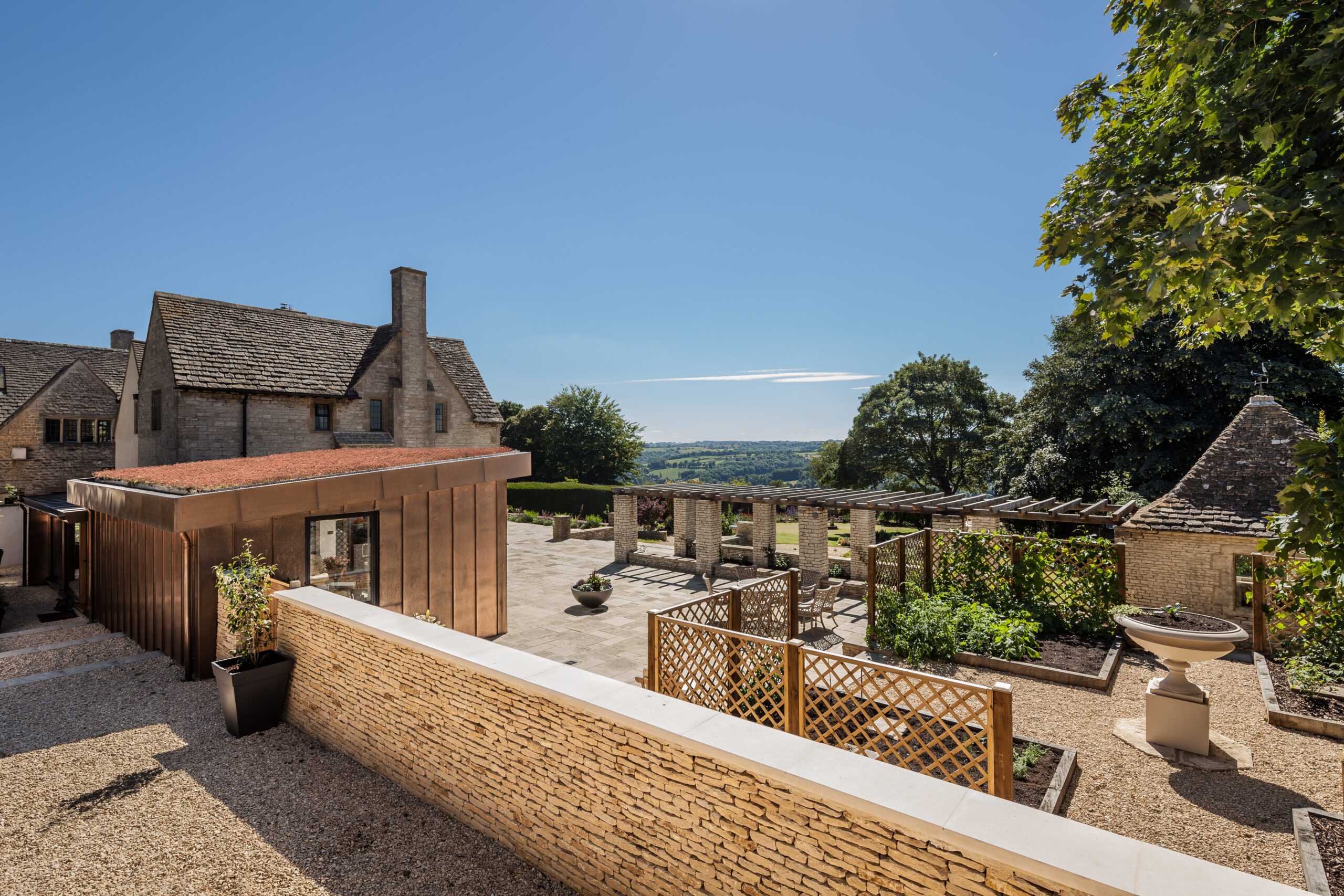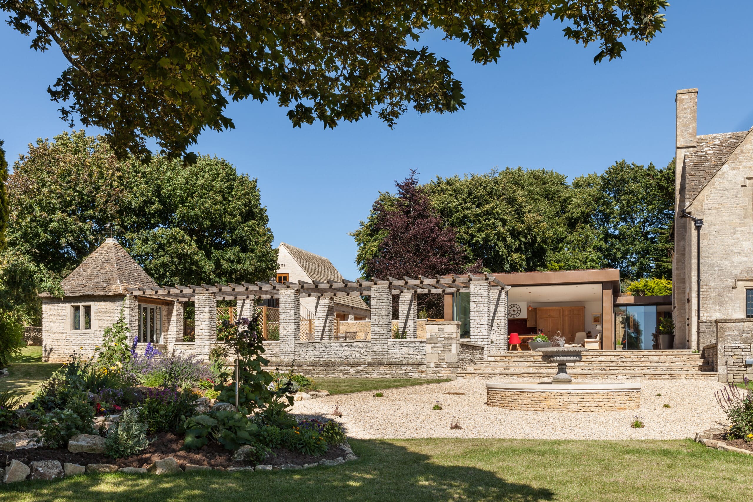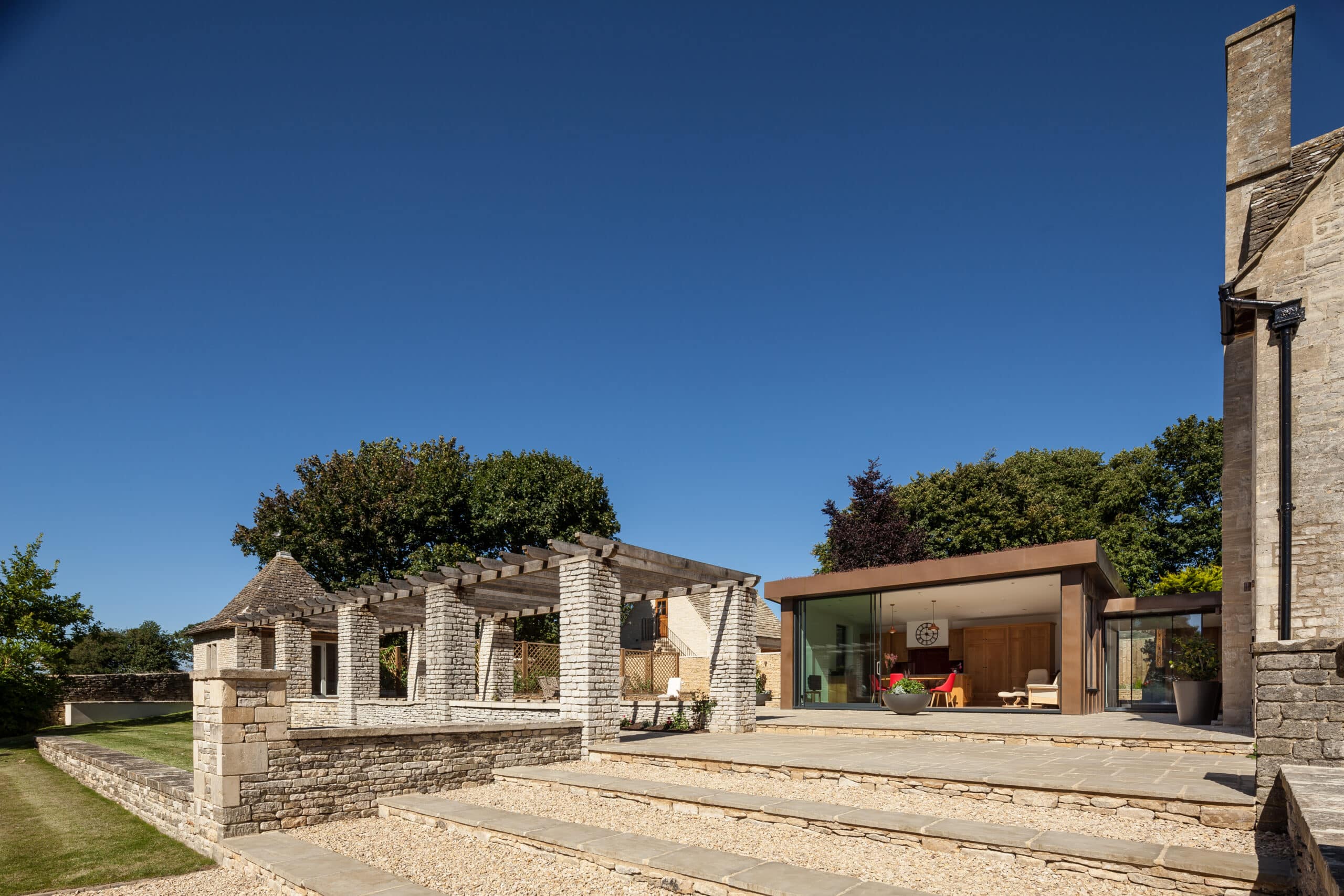 Full refurbishment of a Grade II star listed grand arts and crafts era proportioned property. Works included installation of a bespoke arts and crafts staircase, a copper clad full glazed designer extension, lighting design, sensitively installed underfloor heating and erection of a new double garage. The garden was fully landscape including dry stone walling.